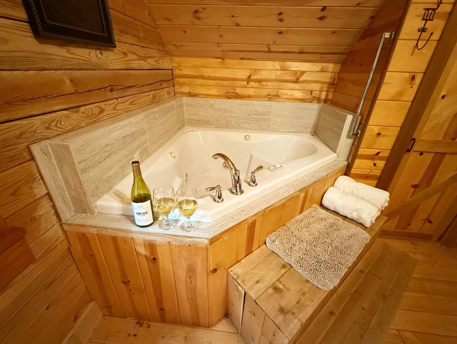 - Indoor jet whirlpool tub for two in master bedroom